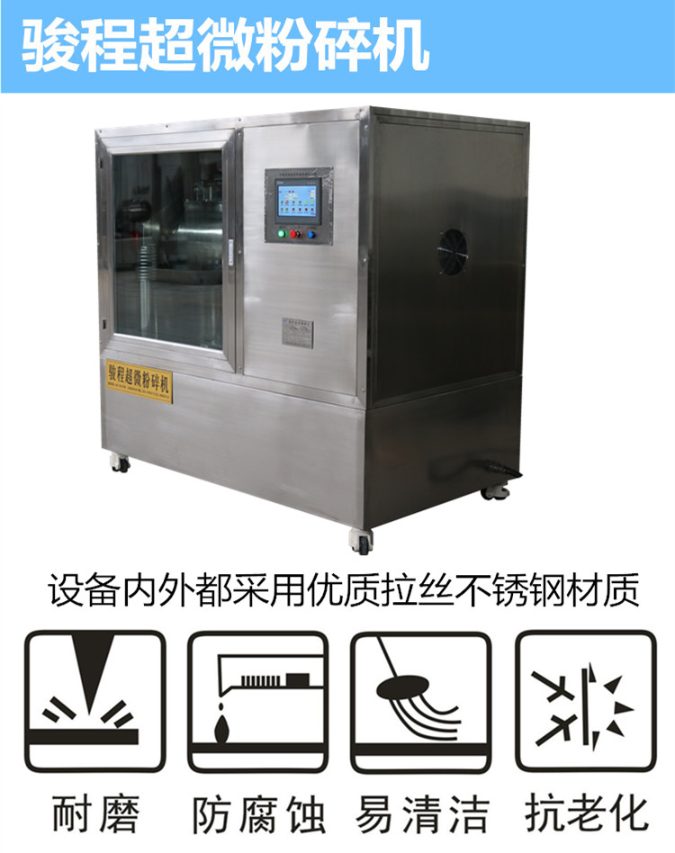 9、粉碎方法和粉碎温度:要根据药材质地、理化性质选择不同粉碎方法和粉碎温度,例如单独粉碎、混合粉碎、干法粉碎、湿粉粉碎、低温粉碎。以上粉碎方法采用骏程超微粉碎机都能实现。