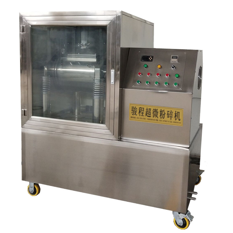 骏程超微粉碎机能使药材粒度达到细胞破碎级,使药物细胞间和细胞内有效成分直接释放出来,提高药物中有效成分的溶出速度和溶出率。超微粉体粒径小,比表面积增大,与胃肠黏膜的接触面积变大,附着力增强,使药物在消化道内停留时间长,使药物吸收更充分,从而提高了药物的生物利用度。增大药物颗粒的比表面积,提高了生物利用度;有利于复方中各有效成分的均匀化。药物在粉碎过程中呈流态化,使每一个颗粒具有相同的运动状态,在粉碎的同时可进行物料的高粘度、高精度的固-固及固-液混合,达到精密混炼(分散乳化)的效果。超微粉碎技术,可使药物粒子达到10 μm,甚至更小,可明显增加内服制剂在体内的溶解吸收程度,并有可能用较小剂量达到原方的疗效。利用超微粉碎技术获得的粉制剂,更符合中医处方用药的要求。外用散剂引入超微粉碎技术可增加药物的分散性,有利于涂布、附着,使有效成分更易于透皮吸收,并可减少对皮肤的刺激性。在冲剂、胶囊剂、片剂、膜剂等固体制剂中,根据处方性质,在制备工艺的某些环节引入超微粉碎技术,有可能改善溶解度、崩解度、吸收率、附着力及生物利用度。超细粉体工艺制得的产品起效迅速、生物利用度高,能提高疗效、降低不良反应、减少服用剂量、节约药材。提高中药的压片和造粒性能,服用口感好,便于应用。超微粉碎机除适用于单味药材、复方制剂外,还适用于干浸膏、粘多糖等的提取物以及西药及其辅料的制取。